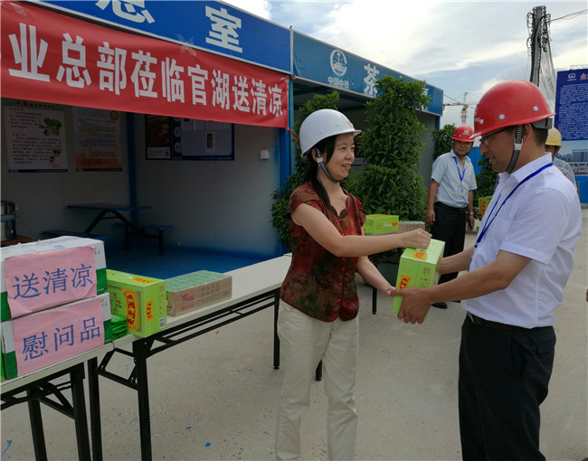 7月19日,公司党委副书记徐培武为福州地铁项目部、装饰安装分公司项目员工和劳务人员送清凉,叮嘱项目部在收尾期间做好安全质量管控和防暑降温工作,切实保障广大员工身心健康。