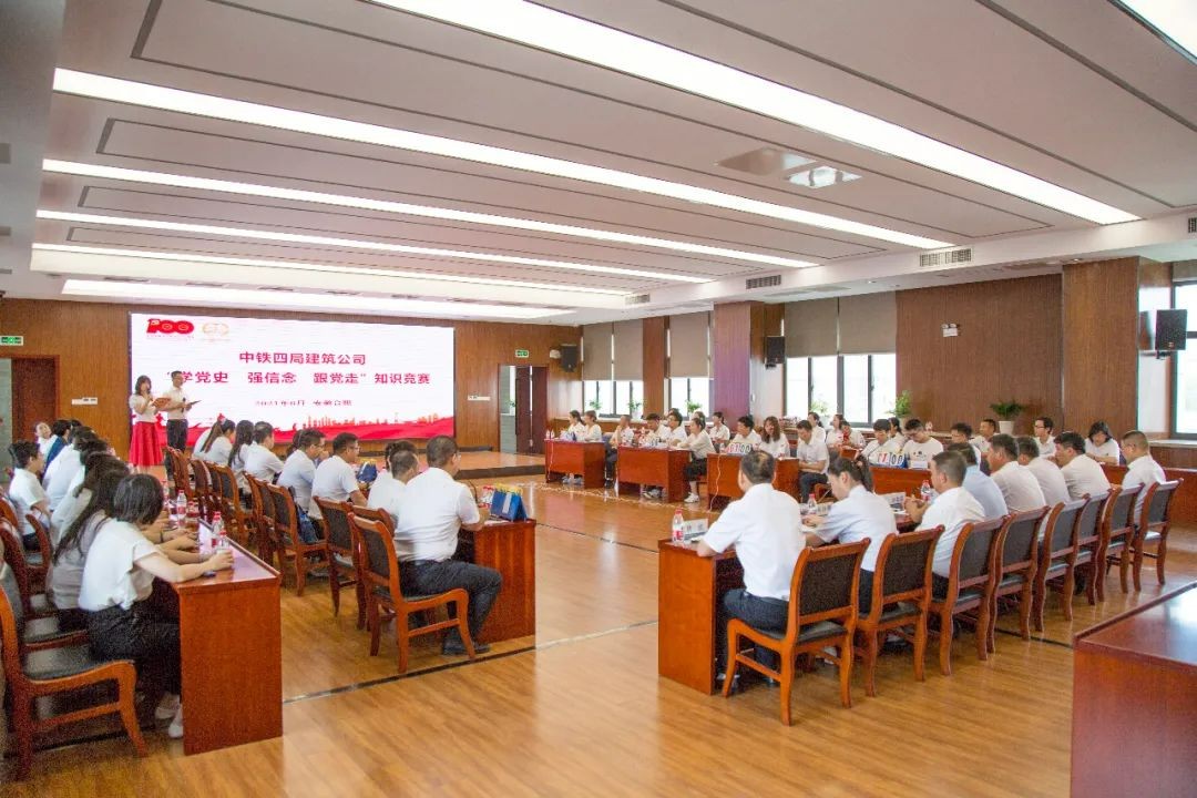6月8日,中铁四局建筑公司学党史 强信念 跟党走知识竞赛成功举办,公司党委副书记韩斌、工会主席关世东、总法律顾问杨冬兵、党群部门负责人及本部、分公司、合肥区域项目党员代表,参赛选手共50余人参加活动。