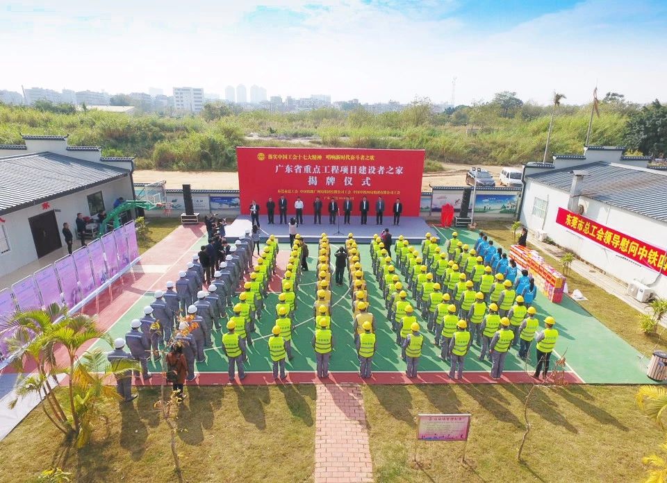 12月19日,广东省重点工程建设者之家在石龙铁路集装箱办理站项目揭牌。东莞市人大常委会副主任、市总工会主席陈锡江,石龙镇党委书记吴世文,中国铁路广州局集团广州工程建设指挥部副指挥长丁健,中铁四局工会主